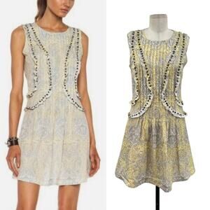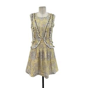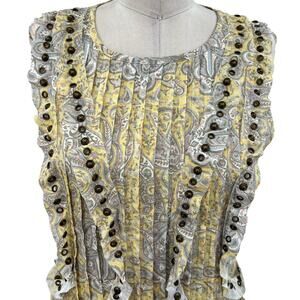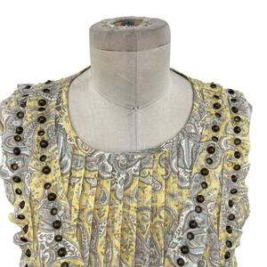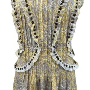 Pam & Gela Raw Edge Dress Paisley Print Grommet Sleeveless Yellow Size Small