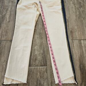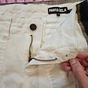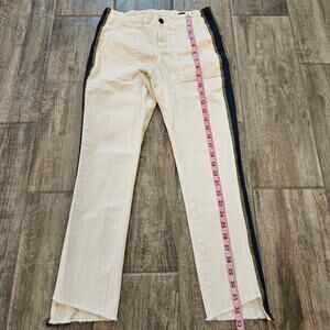 Pam & Gela Side Stripe Step Hem Jeans White Size 25 Cropped Raw Hem Lace Back