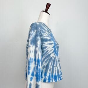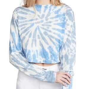 Small Pan & Gela long sleeve tee. Tie dye cotton fabric. The colors on the shirt look a little more saturated in real life compared to the modeled photos. Crew neckline. Cropped length. No flaws, great condition!