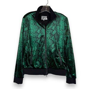 Pam & Gela Track Jacket Green Velour Velvet Snake Print Streetwear Medium
