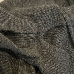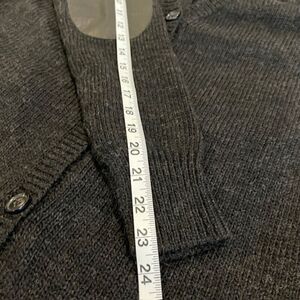 Pam & Gela Wool Alpaca Lamb Leather Cardigan Button Front Zip Back Black Small. Excellent condition. See photos for details and measurements. Wool and alpaca blend sweater with Lamb leather elbow patches and back zipper which zips up from the bottom. luxurious, elegant, classy, fall winter, ski trip, cozy, classy, date night, small slits on sleeves and hem