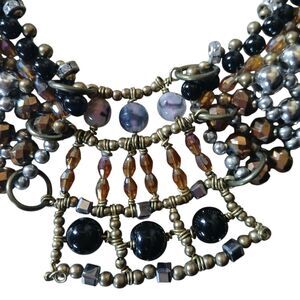 Vintage, Anthropologie, Metal, Bronze, Antiqued, Multi-Colored, Bib, Choker, Cocktails, Dinner Date