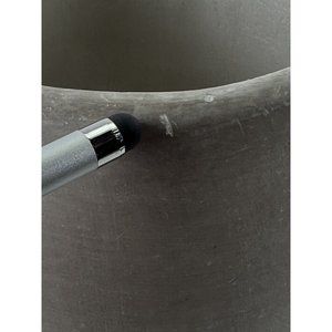 There are two scratches on side and a tiny chip as photographed. Stands about 8" high and is about 3.75" across.