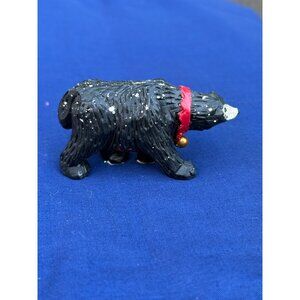 Handcrafted black bear figurine with intricate detailing, showcasing a red collar accent. Durable and collectible, ideal for decor or gifting purposes.