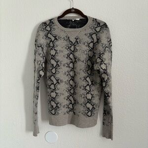 Pam and Gela Women's Size P Gray 100% Wool Crewneck Printed Sweater