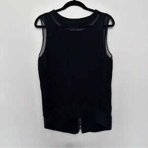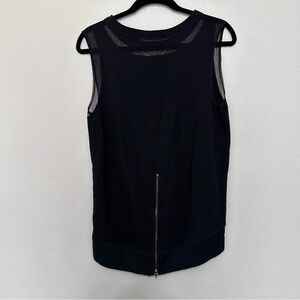 Pam & gela sleeveless terry half zip back slit pesh paneled black top size S