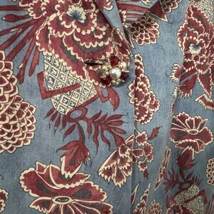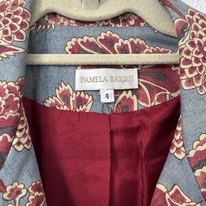 Pamela Barish Floral Trench Jacket Sz 4 Boho Chic Vintage Style Bling Button Art