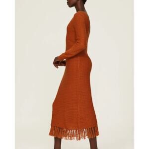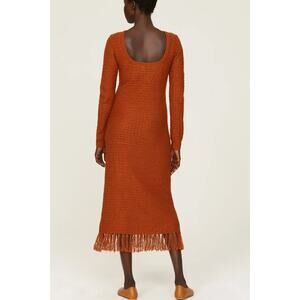Pamela Love Clay Brown Crochet Maxi Dress LARGE Sweater Fringe Designer $395