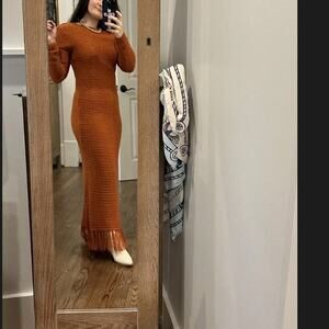 Fall Western vibes knit maxi dress, fringe hem, scooped back, detached lined slip, long fitted sleeves, bodycon Perfect for career, office winter event, winter, fall outfit, business casual, going out, dinner date