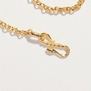 This delicate 16" gold chain is perfect for layering. The unique fastening features a twisted snake curled in the infinity sign, representing rebirth and immortality.