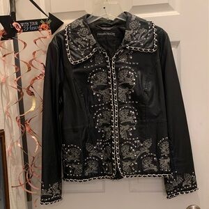 Pamela McCoy 100% Genuine Leather Floral Embroidered Jacket 🤍