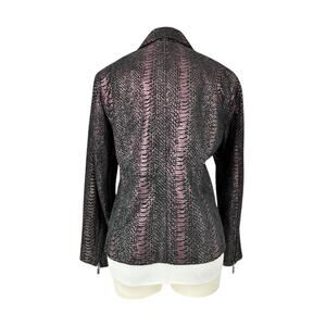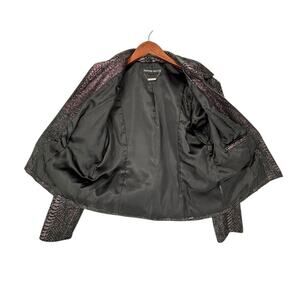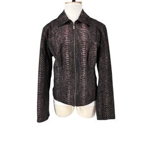 Pamela McCoy Animal Print Leather Jacket EUC Large Purple Bronze Black