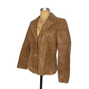 Striking Pamela McCoy vintage brown blazer, showcasing a snakeskin pattern. Perfect to make a bold style statement at any event.
