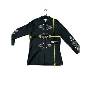 Pamela McCoy Black Embellished Long Sleeve Cardigan Sweater With Rhinestone Deta