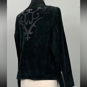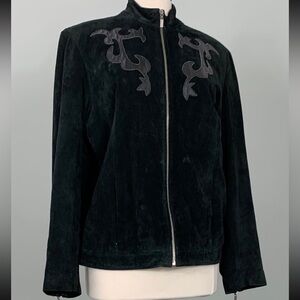 Pamela McCoy Black Suede Western Zip Up Jacket with Leather Appliqué Size Medium
