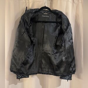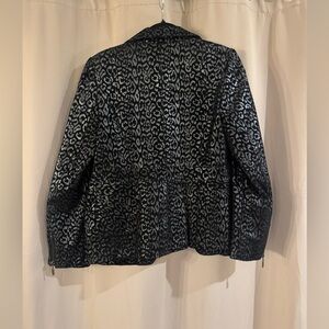 Elevate your style with the Leopard Print Jacket. This chic black and gray jacket features a bold leopard pattern, perfect for making a statement. Ideal for any occasion, it combines fashion with comfort.