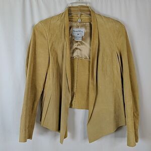 Pamela McCoy Collection Camel Tan Suede Leather Jacket Cropped Women Size Medium