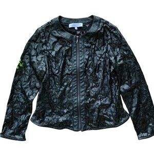Pamela McCoy Collection Faux Leather Sheer Floral Zip Moto Jacket Black Size M