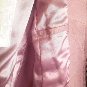 Pamela McCoy Collections Pink Leather Biker Jacket Size 1X in Very Good Condition with only a small "chip" on the front by the top of the hem right side and because the sleeves were "cuffed under" there is slight creasing on each sleeve end. See last pic