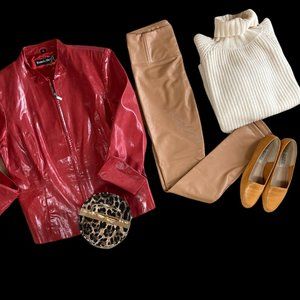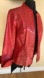 Pamela McCoy Genuine Shiny Red Leather Fully Lined Jacket w/ TurnBack Cuff Sz L Front Zipper, Stand Collar