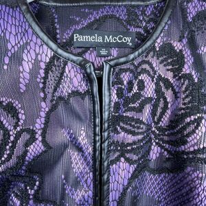 Pamela McCoy Jacket Womens XS Purple Black Lace Coat WhimsiGoth Glam Rocker