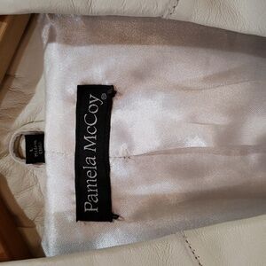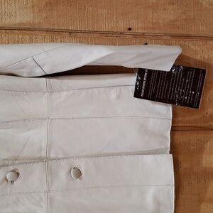 Pamela McCoy NWT Ivory White Genuine Leather Button Front Blazer Jacket …