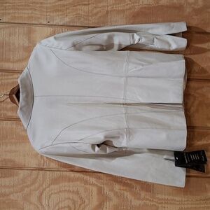 Pamela McCoy NWT Ivory White Genuine Leather Button Front Blazer Jacket Size L