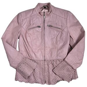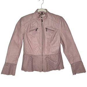 Pamela McCoy Pink Leather Laser Cut Zip Up Jacket