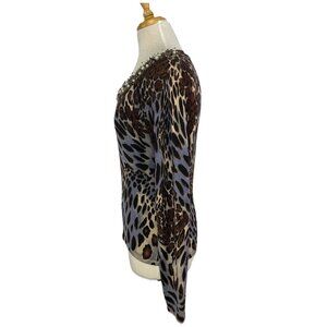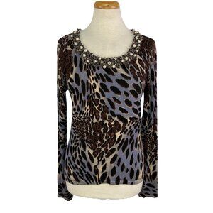 Pamela McCoy S Sweater Pullover Beads Scoop Neck Purple Animal Print Embellished