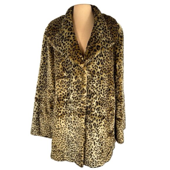 Pamela Mccoy 1X Plus Coat L Large Leopard Cheetah Faux Fur Winter Coat Soft NICE