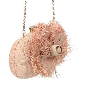 Color/material: blush straw Design details: gold hardware, Dimensional flower Interior design details: Interior gold metal chain shoulder strap Measures 8in wide x 4.75in high x 2.5in deep Magnetic snap Imported Please note: All measurements were taken by hand and are approximate; slight variations may occur.