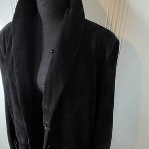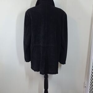 Pamela McCoy black sueded leather jacket. Size large. (This jacket runs long..please note the length). Washable. Very nice & soft leather jacket.