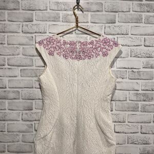 Pamella Roland White Beaded 100% Silk Made In The USA Size 4 Embossed Dress