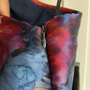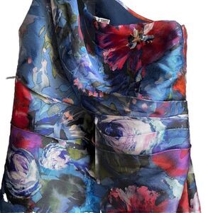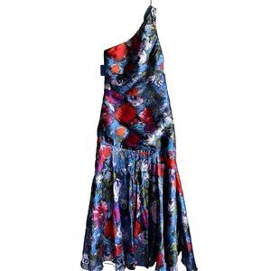 Pamella Roland Womens Formal Gown 6 Blue Floral Watercolor One Shoulder Mermaid
