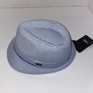 Pamoa hat, blue and white, side L/XL, seersucker with tags, never worn, good condition