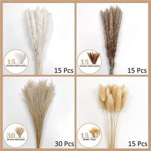 🧿【NATURAL PAMPAS DECORATION】Come with 75 luxuriant and lush pampas plants, including 15 Pcs white pampas,15 Pcs brown pampas,15 Pcs Bunny Tails Pampas Grass, and 30Pcs Reed Grass.