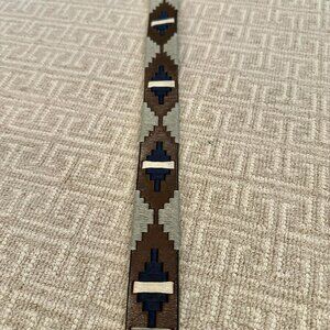 This embroidered leather belt blends understated style with Argentina-inspired heritage, featuring hand-stitched pampa diamonds in a classic navy, grey and white palette. The Tornado pairs effortlessly with smart casual and relaxed tailoring, complementing natural fabrics and a muted, understated wardrobe.