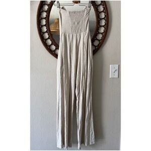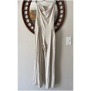 Pampelone santorini jumpsuit tan linen cotton strapless wide leg size small