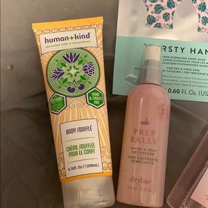 Face cleanser, body lotion, rose facial spray, hair detangling spray, facial serum, and hand mask