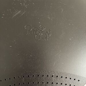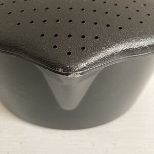 Pampered Chef Black Large 2qt Micro Cooker Rice Veggie Steamer Strainer USA Made. Some light surface scratches on lid. Pointy tips on both sides of lid are scratched as seen in last photo.