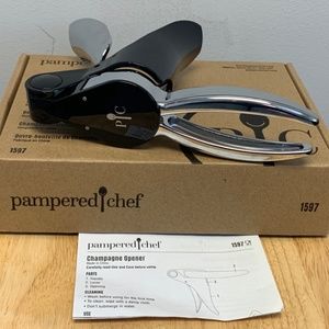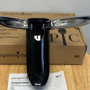 Beautiful black and chrome Pampered Chef Champagne Opener in excellent, like new condition. Original box and insert included. Item # 1597. Sold new for $32.50.