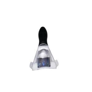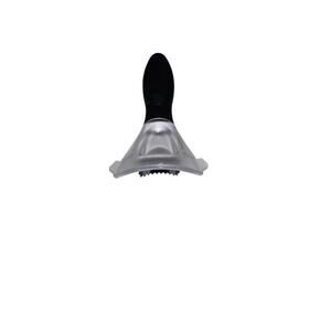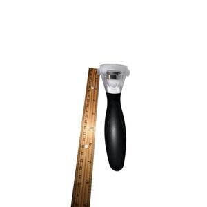 Handy Pampered Chef corn kernel cutter featuring a contoured black handle and a clear guard with a stainless steel blade designed to glide along the cob for clean, even kernel removal.