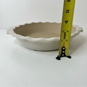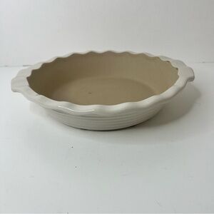 Elegant beige ceramic pie dish with a wavy edge. Perfect for baking and serving.