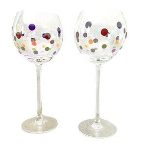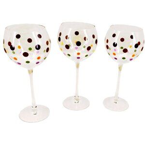 Pampered Chef Dots Collection Wine Glasses ~ 3 Balloon Goblets Discontinued EUC