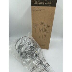 Make your next outdoor party a hit with these stylish and functional drink holders from Pampered Chef. These party sticks are perfect for holding your favorite wine bottle and glasses, so you can enjoy your drink without worrying about spills or stubbing your toes. Made of durable metal material, these stakes are perfect for any outdoor occasion, whether it's a picnic, barbecue, or garden party. The silver color and sleek design of these stakes will complement any outdoor decor, while the included wine glasses will add a touch of elegance to your party. Get ready to entertain in style with these Pampered Chef Outdoor Party Sticks.