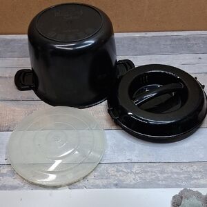 The 3-qt. Micro-Cooker® Plus cooks starchy side dishes like rice, quinoa, pasta, polenta, and potatoes in the microwave. It includes a boil-over guard that works with the lid to circulate liquids, so your microwave stays clean and free of spills. 3-qt. capacity. Includes base, lid, and boil-over guard. Designed for right- and left-handed users. Dishwasher-safe. May show wear as shown in pictures.