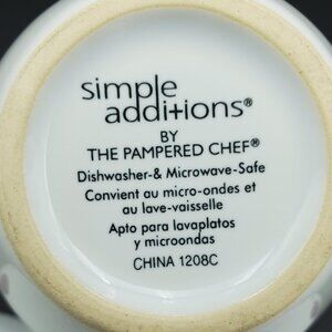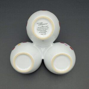 Pampered Chef Siimple Additions Dots 3 Section Server, Polka DotTrio Condiment Server. Handy 3 bowl serving piece with a knob handle for condiments, dips, sauces, nuts, candy, and more! Each bowl is 3.5" round and 2-3/8" deep. The overall size is 4" tall with the handle and 7" wide. Excellent pre-owned condition.