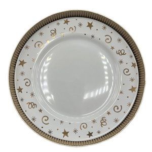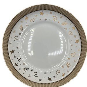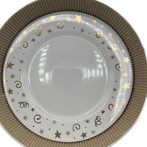 Pampered Chef, Simple Additions, Dessert Plate Set, White, Gold gilt, Stars, Swirls, Holiday, Special Occasion, Brunch, Tea, Tea Party, Bridal, Housewarming, Gift, Replacement, Completer