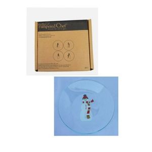 Pampered Chef Snowman Appetizer Round Dessert Plates 6" Diameter Set Of 4. Condition is New in opened box.