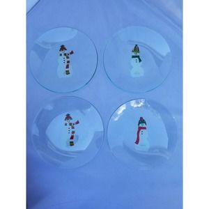 Pampered Chef Snowman Appetizer Round Dessert Plates 6 inch Diameter Set Of 4